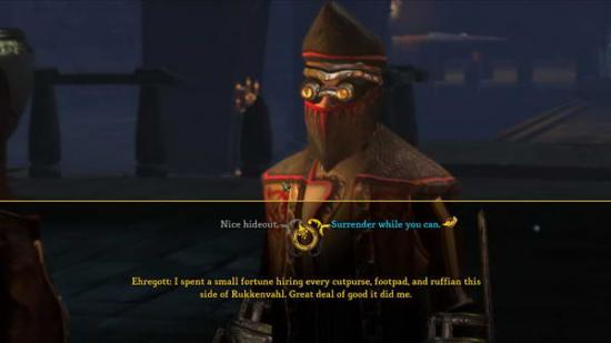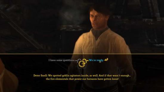 找到他的副手 snell,原来是有 小怪物叛乱 ,玩家只需要找到它们的首领、打败他然后迫使他谈判就可以,不用杀太多毕竟还需要他们这些劳动力。