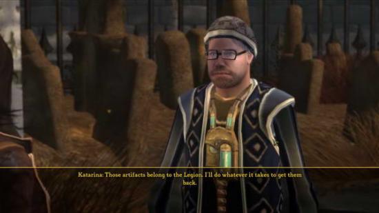 下面去处理议员mudgutter的任务,去墓穴抓一个贼,在墓穴后碰到一个学者,他一直在研究第十军团(也就是玩家的组织),