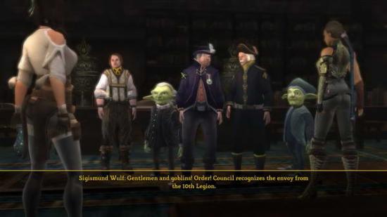 来到stonebridge城的大会堂,议会要投票决定是否支持军团,玩家需要挨个去找 议员们谈话以争取支持。