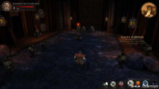 【主线任务1 英雄的责任】 进去就是几个小怪,轻轻松松收割后出现个矮人(好像矮人都长一样)又是对话又是动画,我无视之。之后按小地图红色箭头找到三个矮人,