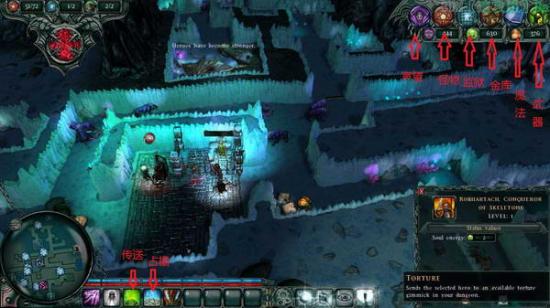 杀死英雄之后,在监狱建造电椅等一些虐待物品!左键英雄按上图的TORTURE
