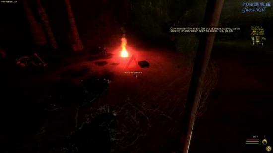拿到手枪之后的路比较黑,按住C有个菜单,移动鼠标选在下边的图标,之后会出现图中的菜单,最右边武器选项的最后一个左键选中后可以开启手电,这些图标右键点击后可以添加到按C出现的菜单中。