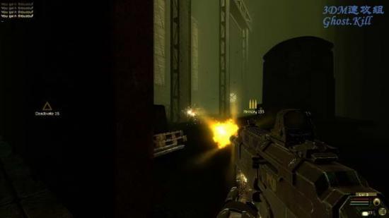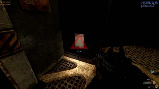 游戏开始之后所在的房间中只有一扇门,从房间出去后一直前进,可以在地上捡到手枪,默认是回车键,比较别扭,其他的控制和普通FPS差不多的。