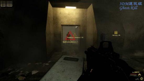 接着去最后的目标点,有两个入口,从有门的这里进入,到门口的时候会有人破门而出,干掉之后进入里边,在第一个楼梯口上楼。