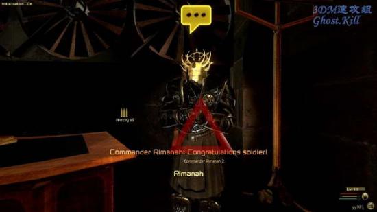 新场景载入完毕后先和旁边的友军对话,然后出去到这扇大门前和看门的对话,目前还不能见他们BOSS,先去做任务吧。