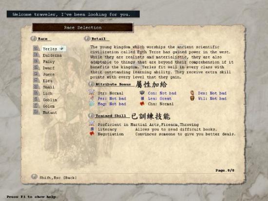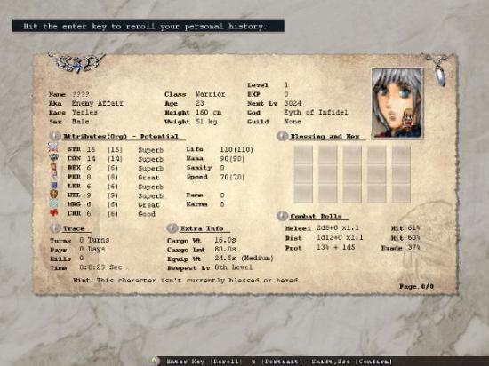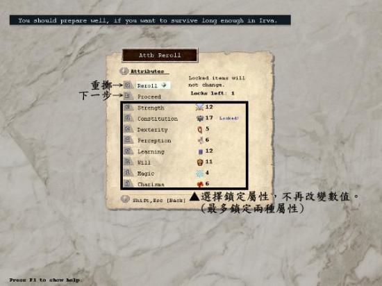 决定角色的初始属性数值,掷出的数值范围依"种族"和"职业"而定。