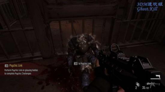 经过几个牢房后到了一个尸体前,按住E收集之后可以增加点数,这点数就是升级用的, 其他还有些加点数的方法,详情自己到挑战菜单里看吧。