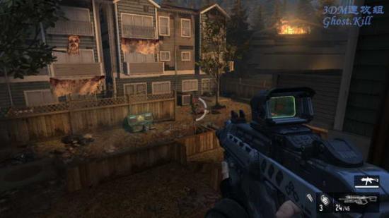 从大楼出来后可以捡到新武器,三连发的,威力很可观,接下来很多敌人也会使用这种枪, 所以不需要太担心子弹问题。