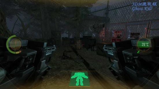 建筑里带补丁的墙可以打烂,其间还会遇到一次敌人机甲,干掉之后从建筑里出去到一树林里, 杀过一段路后又出现幻觉,清醒之后继续从林间前进。