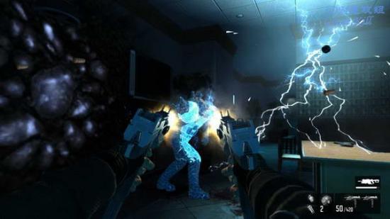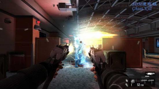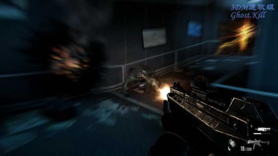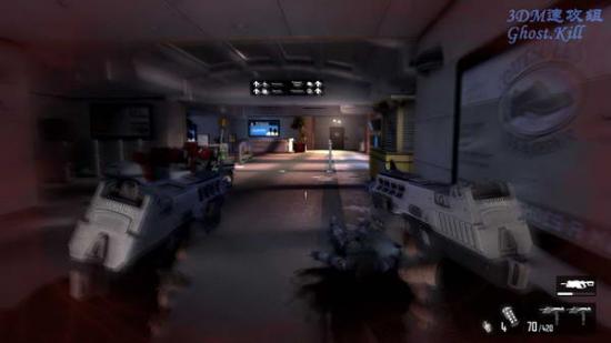 来到一个蓝色主调的昏暗房间,看上去是餐厅,这里遭到敌人埋伏,先是一群杂兵,杀光后是指挥官, 不过弹药补给充足的情况下还是比较容易干掉他的。