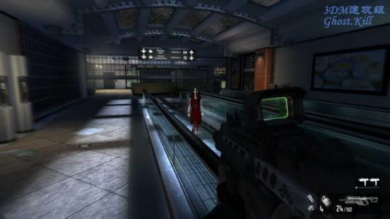 杀过几个房间到了有电梯的这里,电梯上会遇到打酱油的Alma,打个招呼走人就可以, 接下来的房间依然是怪和敌人的乱斗。