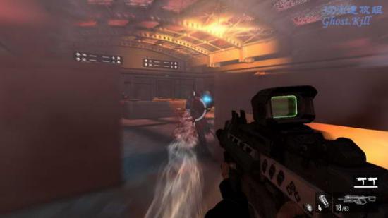 到了下一个房间后敌人会放出烟雾弹,瞪眼散了后干掉杂兵,然后去柜台那里补充下弹药, 对付对面出来的敌人,显示普通兵,然后越来越强的,最后是拿防爆盾的。