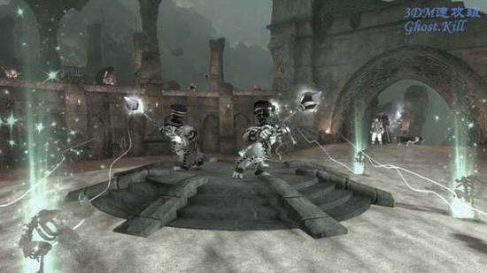 来到一个城市的遗址后被关了起来,房间中央有三个用魔法的敌人,他们周围是屏障,他们在屏障不断召唤杂兵, 杂兵杀光之后他们才会接触屏障,同样杀光之后进入统治之路,开箱子之后会来。