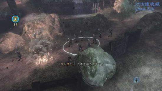 从山洞里出去后和沃尔特来到友军的营地,到这里和管事的聊两句,然后去城墙上使用迫击炮, 按照要求打掉两个稻草人,鼠标控制很容易。