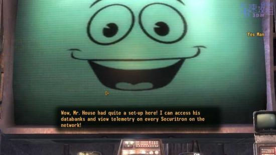再回去之前还是先料理下yes man吧,从酒店出来后不愿就能看到他,对话之后和他一起去lucky38,他顶替了Mr.house的位置,然后给我们演示了下机器人的攻击力,接着我们离开去Caesar那里就行了。
