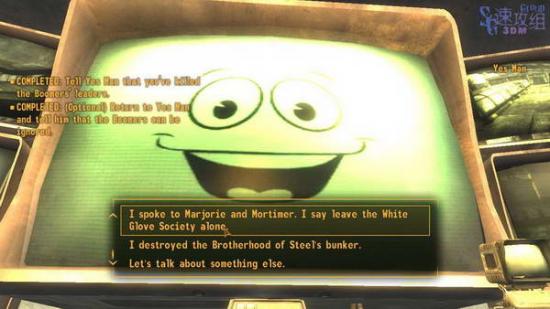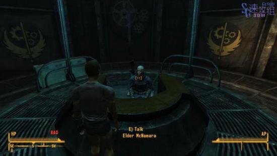 我们被洗了后和一个胡子拉碴的大叔对话,让他带我们去见头头,之后我们来到头头elder这里,对话后他要我们去解决一个NCR的家伙。