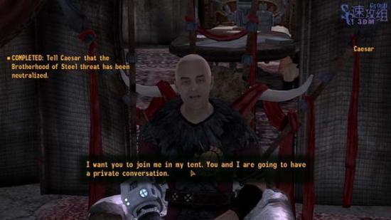 再回到fort和Caesar交差,然后跟着他回到他屋里,等他坐到椅子上之后再和他对话,这次他会告诉我们他是时日不多了。