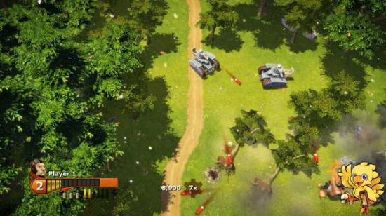 解决他们以后过了一座吊桥,然后打爆几张坦克以后搞定。
