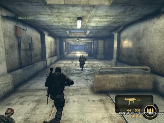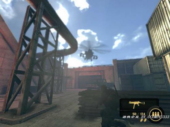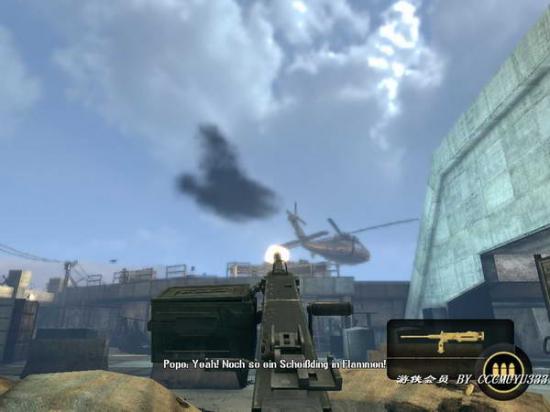 2:之后从一扇门内进去,这里是个通道,照例杀光敌人;这里注意先不要冲上去,前面有架直升机会炸死你。先把敌人清光,然后利用右边的机关枪打爆直升机。