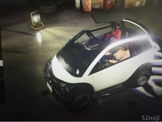 6、进车库,站到调整车位的点上调整车位,你会发现进来的路人车名字叫哑剧(哈哈)
