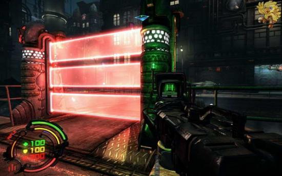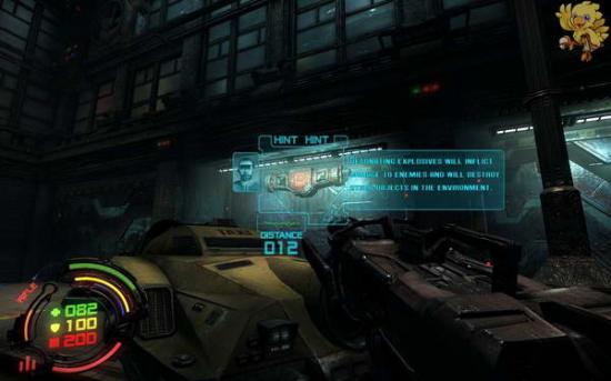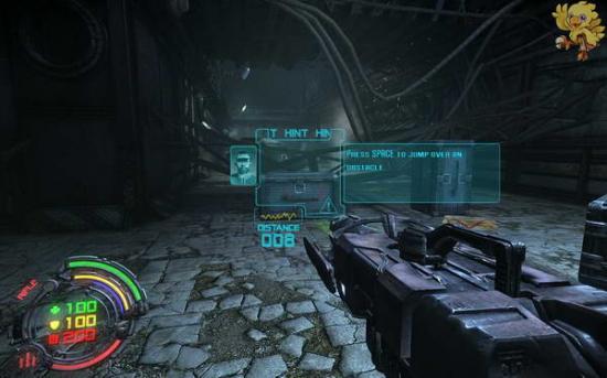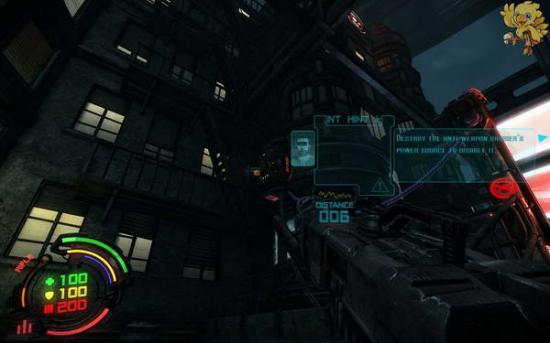 打爆上面的东西..进去打开发动机,然后出来到刚才有红色条封闭的门那,右边的控制器,打开门,走过去,往左走,往左走不要从第一边的梯子上去,走最里面的梯子上去.上去会看见机器人,打掉,从右边梯子上去,看见门是封闭着的,往左上角看。