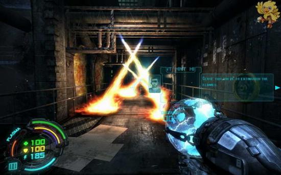 打爆这个玩意,就可以进去了,进去后,左边会有武器升级,升级完成,右边有个控制台打开他,然后个看见前面在冒火。