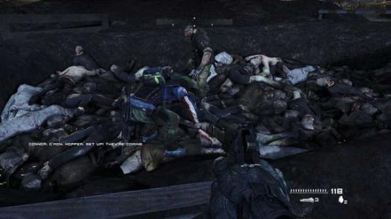 之后敌人增援部队来了,只好跳进死尸堆