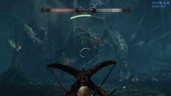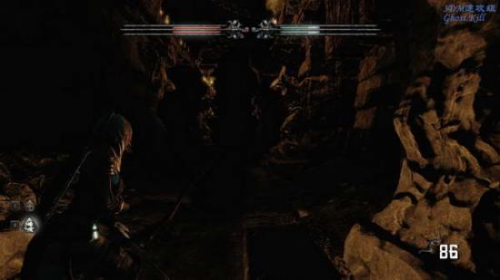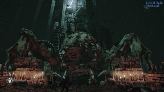 杀到一个巨大的蜘蛛骨架这里,干掉所有敌人后拉动左边的拉杆,这样骨架会升起来, 跳进地上的洞里。