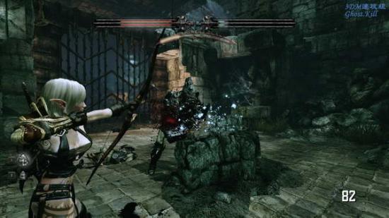 眼球走了后楼下虽然会冲上来很多敌人,不过问题不算太大,主要是远处的弓箭手太贱了, 这么远的距离射的居然这么准,速度先用魔法解决掉再说。