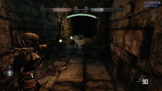 再杀过一段路,到了一条漆黑的通道,干掉几只蜘蛛后前进,黑乎乎的什么都看不见,要靠耳朵了, 通道两侧都有蜘蛛洞,那边有声音就打哪。