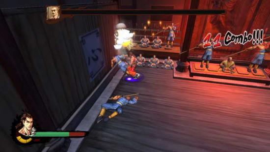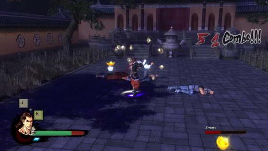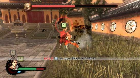 棍僧的攻击方式很简单,就是拿棍子转圈,围攻你,当头来一棍等,按L格挡掉,然后按K挑起,按住J狂揍一顿,然后按K一脚踢飞