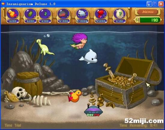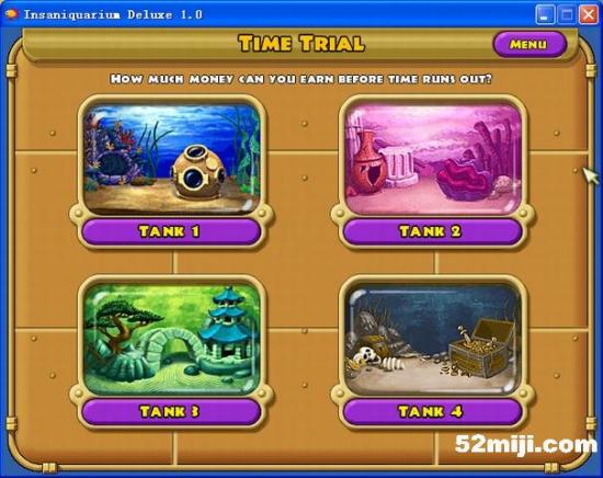 当你完成了冒险模式后时间模式就可以玩了。在这个模式中我们要在时间结束前尽可能多的赚钱!跟冒险模式一样时间模式同样拥有4个场景的水族箱,除了第一个是5分钟外,其它3个场景都是限时10分钟!另外还要注意屏幕右下角时间的流逝情况,游戏中除了可以选择正常数量的宠物来帮忙外,还可以额外购买其它随即生成的宠物,但是每买一次价格会成倍增长,所以还是量力而行吧。当时间结束时,你所赚到的钱的5%可以变成贝壳的数量并保存。