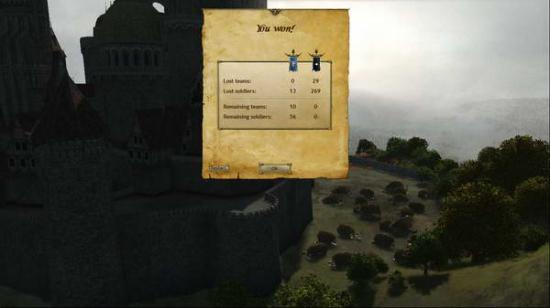 战斗胜利后大家在呐喊庆祝,但是我们的英雄却安不下心来,因为他爱人还没找到,他迫不及待想去搜索城堡。