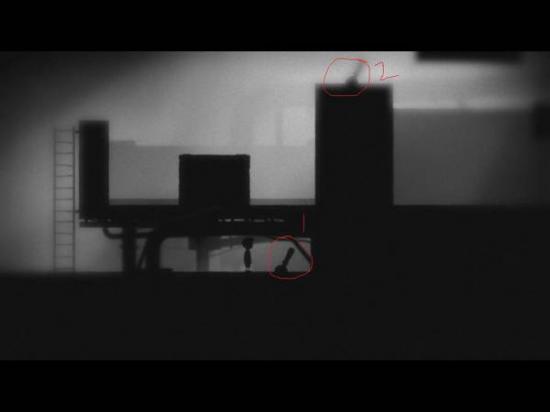 上去后向右再一路向上,走到2个倒着的烟筒处(不知道叫什么类似烟筒),主角先推动机器(这也不知道)来到中间,把右边的机器拉到最左边直到拉不动为止,再到左边拉动开关,此时轮胎出现有段时间,跳到左边机器的右边把他推到轮胎滚出来的地方,然后往后拉(不然时间来不及),用那2个机器把轮胎运送到右边,轮胎会顺着最右边路口掉下去,顺原路下去,到轮胎处,把它拉到最高点放手立马回到有箱子的那个地方(推着轮胎跑),轮胎来回滚动导致机关打开,刹那间把箱子推下去(箱子推下去后人立即向后退,小心碾死),现在把箱子拉到右边,跳到有摇杆机关的平台上,扳动机关,下来把箱子推到齿轮上,再跳到上方平台上,把平台上的箱子推上齿轮,人也跟着上齿轮,顺着齿轮,来到陆地,然后2个箱子一个压在机关处,一个放最右角