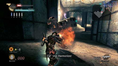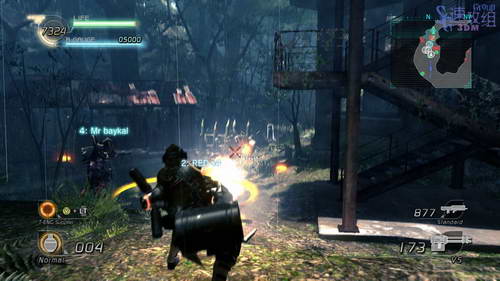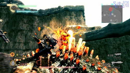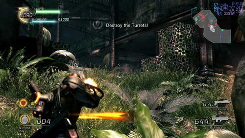 从一开始的地方前进一点会有敌人机枪扫射,冲刺到掩体后面,然后慢慢的想敌人建筑前进,防御炮什么的手雷搞定,说是这么说,实际上做起来还是有些难度的,毕竟敌人数量不少,而且还有机甲,虽然现在才说有点迟,不过LT是扔手雷,Y加LT切换受累种类。