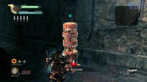 全部机器使用过后过场动画,然后接下来按使用图中这种机器,似乎是导弹,连按B把它收进去,都收进去后开始倒计时,一共一分三十秒,我们要守着这四个不被敌人重新激活,有任何一个被重新激活了的话就会停止倒计时,除非我们再次关上它。