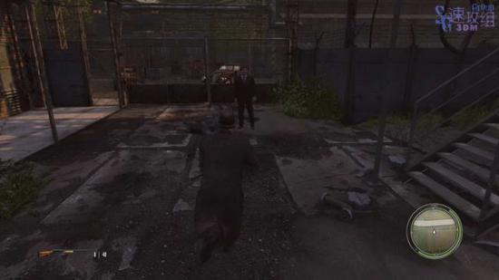扫完了之后到后面的车箱里那燃烧瓶,房子里扔两瓶之后会发生大爆炸,很震撼。搞定之后上车,去指定地点的大门前。