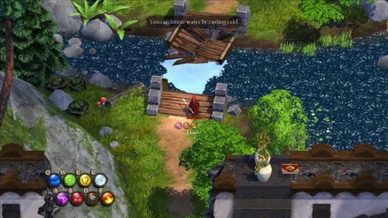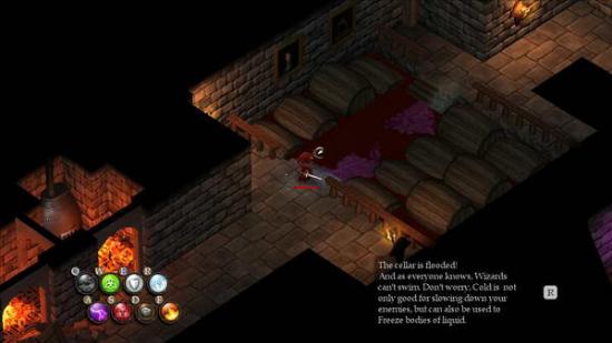 如下图,在越过酒窖的酒池,你就可以把河面冻上通过。但是注意,冰冻不是永久的,是有时限的;这些冰冻的表面会在一定时间内自动融化
