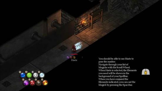 游戏的左下角则是你可以使用的魔法,但是魔法目前都未解锁。需要本章的教学说明完毕才可一一使用。每个魔法对应的字母即为该魔法的使用快捷键