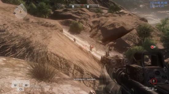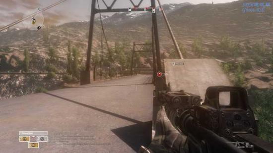 继续下山,最后在一条河前和队友会合,他们正在对着河对岸射击,对岸敌人不少, 但是太远,而且看不清敌人,先尽量解决掉几个能看到的敌人,然后直接过桥。