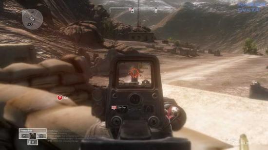 直升机在一片山区降落,下来之后之目标点的山里,说是山不如说是一堆石块, 先解决掉对面房屋的狙击手再前进。