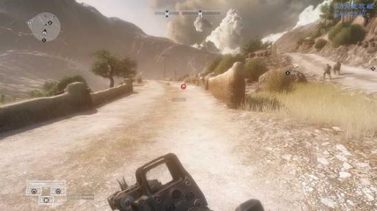 尽量从建筑的里走,边走左边的大路,远处RPG的敌人还是很恐怖的, 房子里虽然有不少掩体,但是近距离遭遇敌人的几率也高很多。