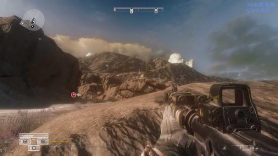 继续下山杀到下一个村庄来,还是杀光所有敌人,然后到目标的房顶上, 对着远处的三个目标点村子呼叫空袭,按住ALT,然后WW,一共三次机会,没能炸掉也没关系。
