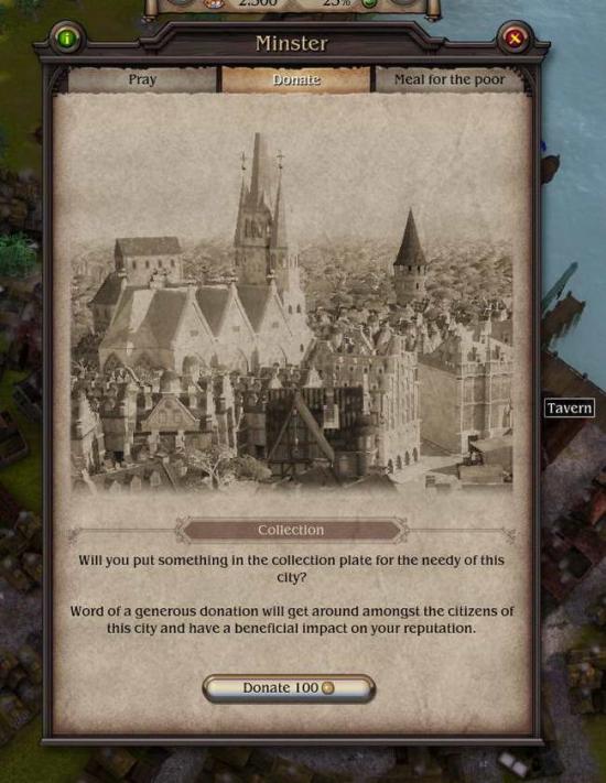 教堂的主要作用就是提升你在本城镇的声望和支持度。如果你懒得去不停的卖来卖东西,这倒是一个比较快的方法来提升你的支持度。但是也只是有限的