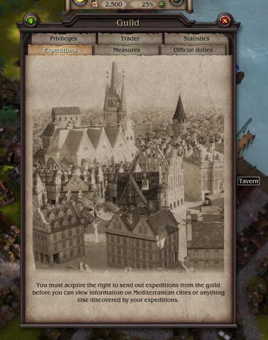 EXPEDITIONS,需要你的商人等级到达TRAELLING MERCHANT,然后花金钱购买。这个许可,可以让你的贸易船到地中海的城镇,进行货物的交易