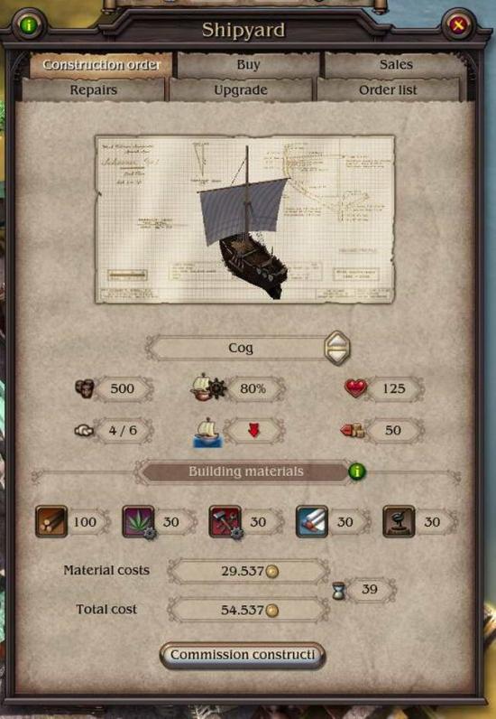 COG也可在后期随同HULK作为贸易船进行远洋航行,也可在后期升级作为舰队的战船。但是前期来说的话。他的价格实在过于高昂,建议可以买或者建造1到2个作为备用