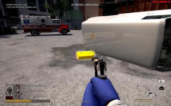 追到这小货车,要用汽油罐点着!逼车里的人出来。这里需要两个汽油罐!