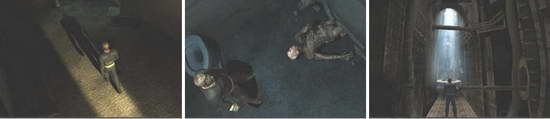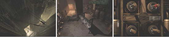 下车后先捡到一个座椅,然后从车的右侧进通道,看到两个巨型排气口,走到两个排气口中间,看到一个风扇,把Tu-Ra-Ce徽章放到风扇轴上它就停了。过桥后的第一个场景是座桥,在桥的另一端墙上的机关处使用开瓶器,并使用通行卡。继续前进,通过一个黑暗的过道时,我发现旁边过道旁边有一扇门(不好找,尤其是显示器对比度不高的时候)。