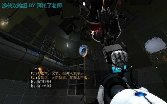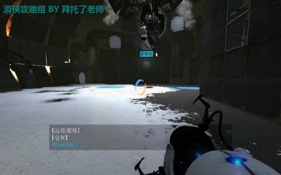 但是主角会被炸出来,在头顶的月球开个蓝色传送门,此时BOSS身下会有黄色传送门。Wheatley会被吸到太空中。