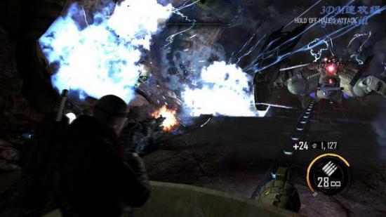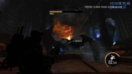 杀到山谷尽头处破坏掉敌人的挖掘机进入山洞,山洞里发现罪魁祸首的HALE,被他发现之后开始逃命。